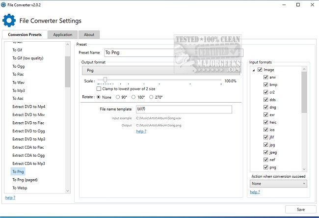 File Converter includes a collection of presets for easier file conversion without extensive settings. You can customize the presets and adjust the specific options for video, audio, and graphical conversions. File Converter can perform concurrent conversions, and you can set the number of operations you wish to process.