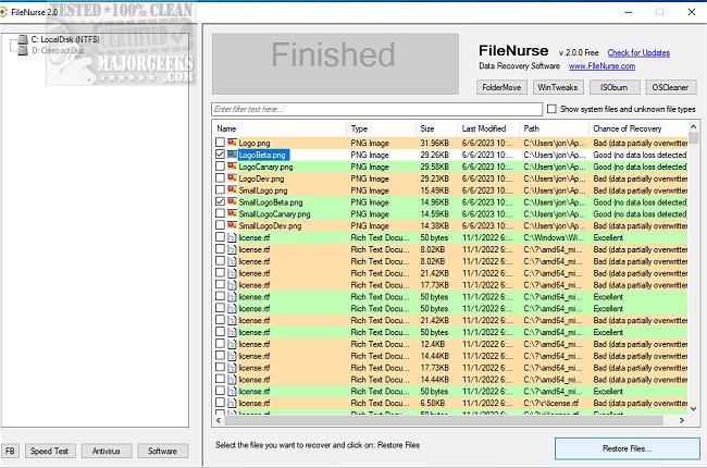 FileNurse can recover all lost or deleted files from your drives in as little as two steps. You can see in real-time if the file is recoverable or damaged.