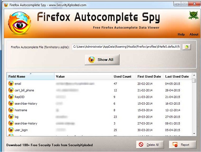 Firefox Autocomplete Spy is the free tool to easily view and delete all your autocomplete data from Firefox browser.