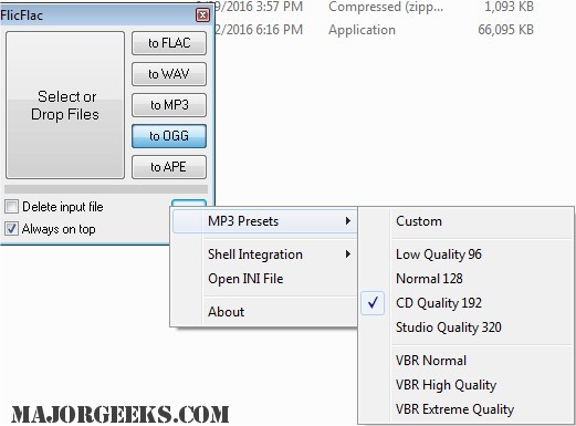 FlicFlac Audio Converter is a lightweight bare-bones audio converter that supports the conversion of FLAC, WAV, MP3, OGG and APE files into other formats.
