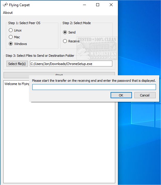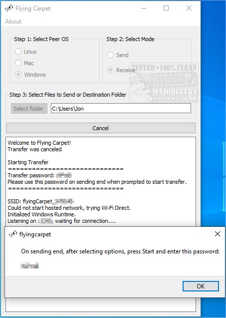 Flying Carpet enables wireless, encrypted, cross-platform file transfers over automatically configured ad hoc networking.