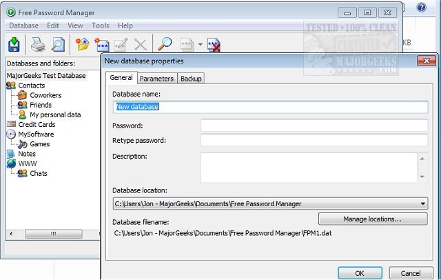 Free Password Manager provides the means to store private data, passwords, and more in a secure database.