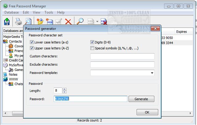 Free Password Manager also has a built-in password generator to help make choosing a unique and secure password a breeze and allows you to store your password databases as well as the program itself on removable devices such as USB flash drives so you always have access to your data no matter where you are. All in all a nice compact and clean way to keep your data safe.