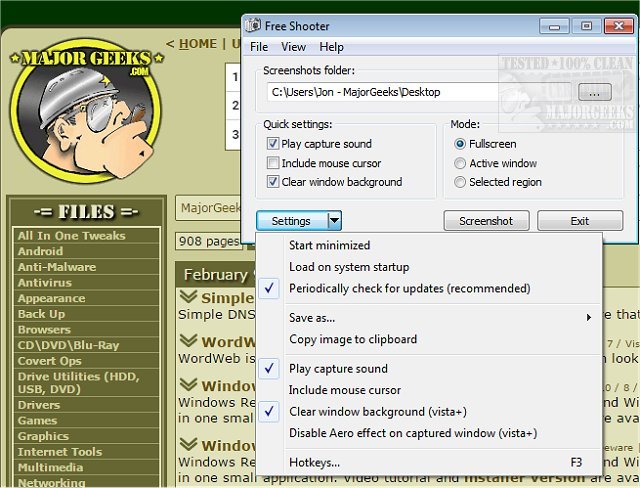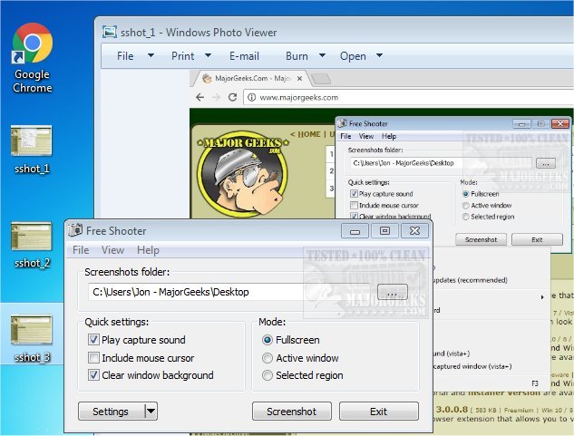 Free Shooter is a tool for taking fast and simple screenshots of the entire screen, windows, and regions.