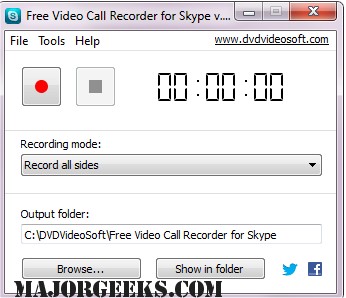 You don't need to download or install any extra libraries to be able to use DVDVideoSoft Free Video Call Recorder for Skype and it has a very simple interface adding to the overall simplicity of use. You just need to specify the mode you like, choose the output folder and press “Start”. If you don't want to record some moments during the conversation, just click on “Pause”. In order to finish the recording simply select “stop”.