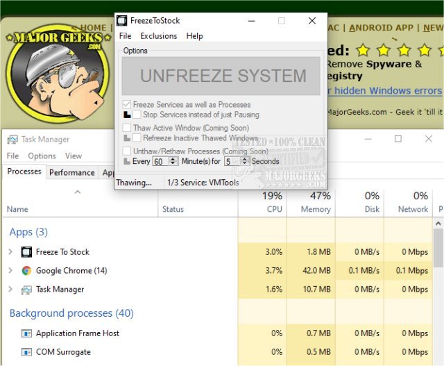 FreezeToStock allows you to freeze (pause) non-essential processes and services in a simple manner.