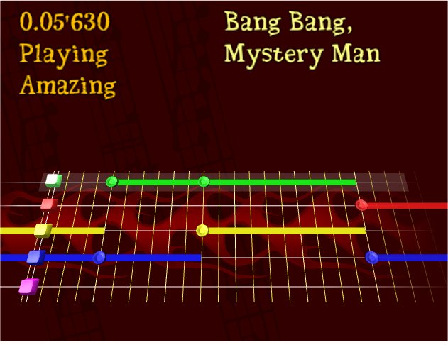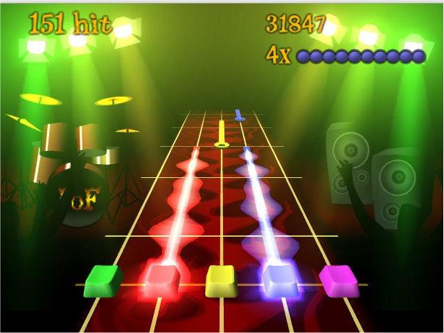 This Guitar Hero clone utilizes an inverted keyboard setup for gameplay using F1-F5 for the fretboard and the enter key for picking but does support guitar controllers and generic joysticks. Frets on Fire's included tutorial is hysterical featuring the voice of the developer - who pokes fun at your inferior ability and teases that the most important key is ESC since you stink!