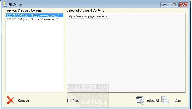 FRSPasty is a simple but helpful tool that remembers the items copied to the Windows clipboard permitting you to retrieve that information again at a later time without needing to navigate back to the source. It will automatically remember any text, images, files, and virtually anything that you copy to your clipboard.