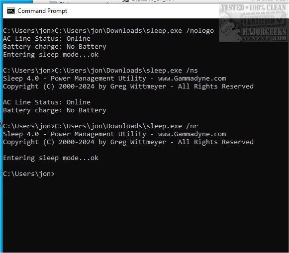 For example, you can make your PC enter hibernation mode instead of sleep mode by using the /h command. Hibernation saves power because the computer does not use any RAM. To wake up your PC, you need to press the power button. Sleep will report the current power status in the console window, but you can disable this with /nr. Use /ns to prevent entering sleep mode while still reporting the power status. To reboot the PC, use /r. Set a delay before termination with /w#.