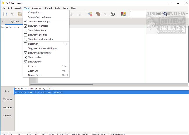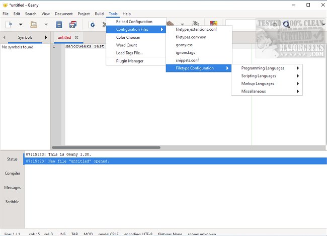 Geany Portable is primarily designed for programmers, although anyone can use it as a text editor. It supports several programming languages, such as C++, C, Java, Python, PHP, HTML, CSS, and others. The top tabs include the usual suspects, such as File, Edit, View, Project, Build, Tools, and Help. Additionally, it has buttons with shortcuts to Revert, Compile, Build, Execute, Color Chooser, and more.