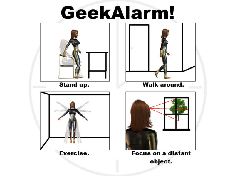 GeekAlarm! is a unique way for you to keep track of when you should take a break while using your computer. By taking breaks you can increase your productivity, reduce eye strain, and allay fatigue. GeekAlarm! has varying degrees of break enforcement including passive, medium, and aggressive enforcement. This helpful utility is a must have for anyone that uses a computer for long periods of time.
