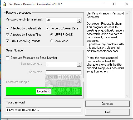 Additionally, GenPass - Password Generator offers the capability to generate unique serial numbers that can be used for your own applications, providing an extra layer of security.