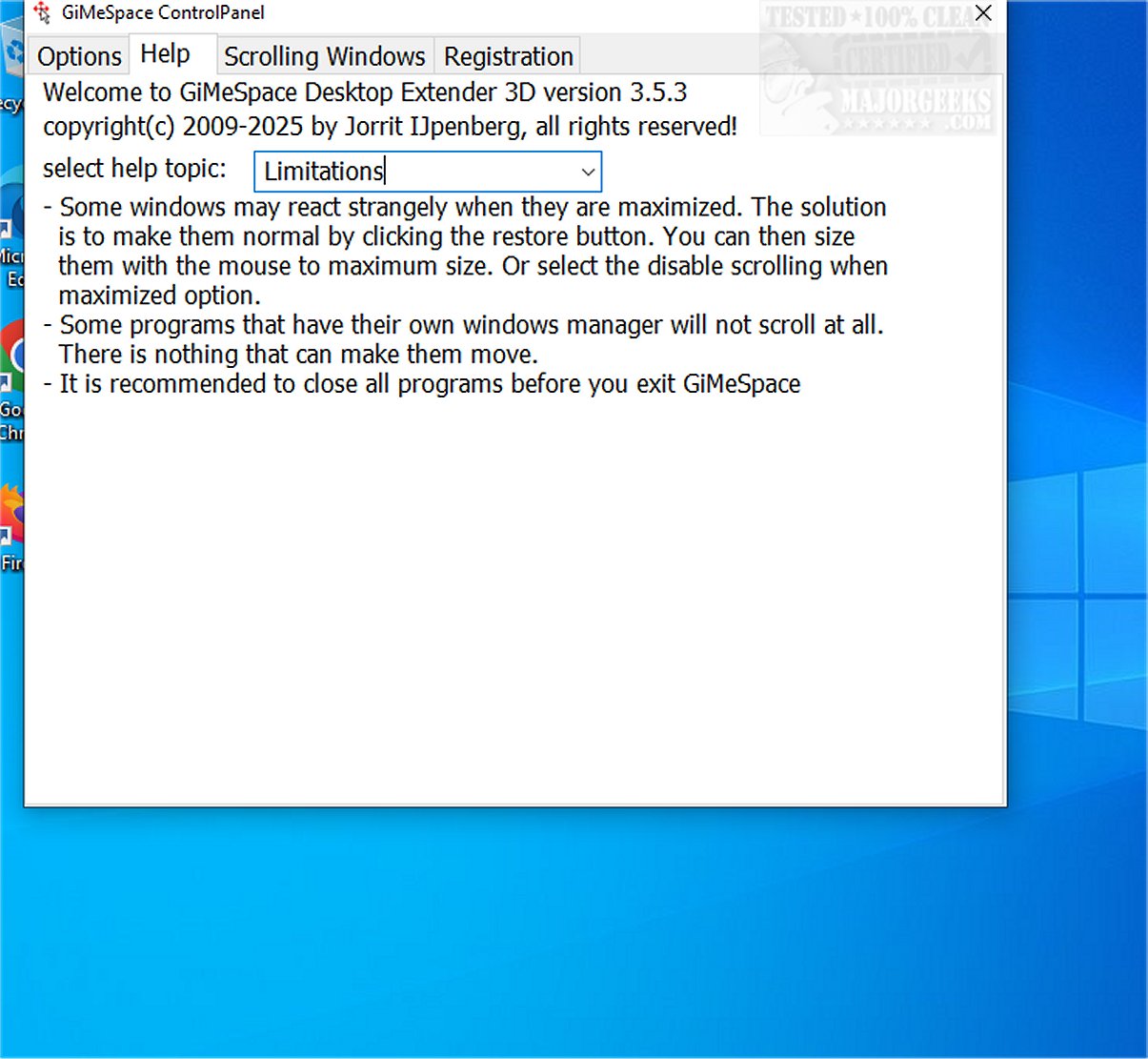 GiMeSpace Desktop Extender gives you limitless desktop real estate by letting your screen scroll, and even zoom, past its physical limits. Perfect if you're juggling multiple windows on a laptop or hate swapping workspaces.