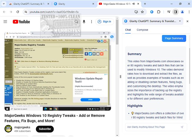 Glarity provides cross-language summaries to help you summarize videos, searches, PDFs, emails, and web pages effortlessly. It supports free side-by-side translations, email writing assistance, Web Content Q&A, and more.