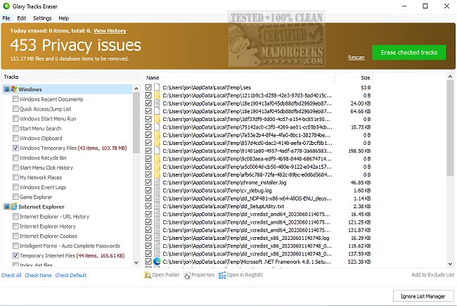 Glary Tracks Eraser is an easy-to-use free privacy protection tool that allows you to erase all history tracks safely and completely.
