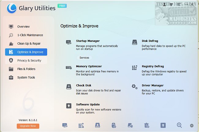 Furthermore, Glary Utilities includes the options to optimize memory, find, fix, or remove broken Windows shortcuts, manage the programs that start at Windows startup, and uninstall selected software. Other features include secure file deletion, an Empty Folder finder, and more.