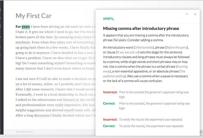 ● Advanced Grammar Checker: It checks more than 250 grammar rules including tricky things like subject-verb agreement, article use, and misplaced modifiers.