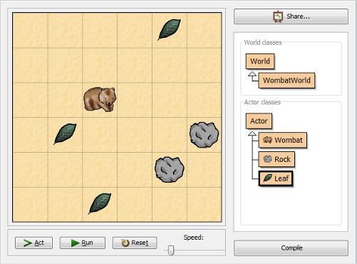 Greenfoot teaches object orientation with Java. Create 'actors' who live in 'worlds' to build games, simulations, and other graphical programs.