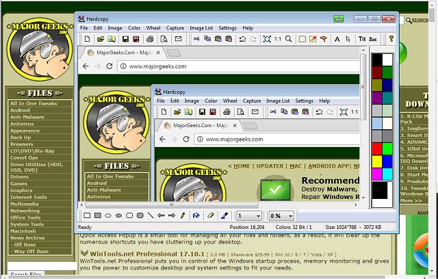 Set up is a breeze. The user-friendly interface allows for quick utilization and allows you to save any capture to regular image files with a massive amount of supported formats. While using Hardcopy, after making a capture, you are greeted with a Hardcopy editing window. This window allows you to edit and tweak the image with annotations title additions, correct/change the color scheme, as well as the ability to reallocate resources like bitmaps and EXE/DLL file icons. Every captured image is displayed inside a marked preview window that includes some to-be-expected screen capture tools (line/shape drawing, filters, watermarks, etc.)