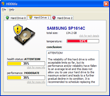 HDDLife displays S.M.A.R.T. attributes in real time and alerts the system administrator if a particular hard drive's attributes exceed threshold values and are at risk.