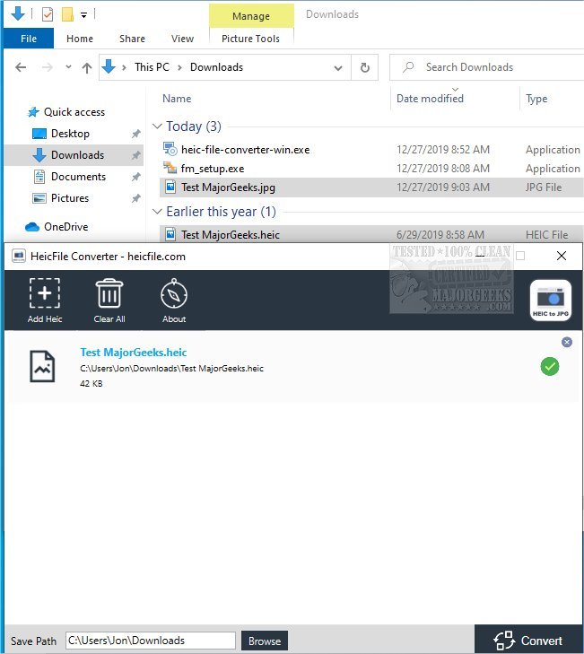 HEIC File Converter allows for the simple conversion of HEIC (High-Efficiency Image Coding) photos to JPG in only three mouse-clicks.