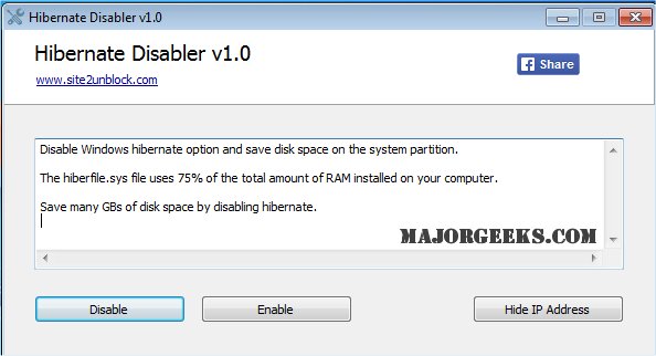 Screenshot for Hibernate Disabler