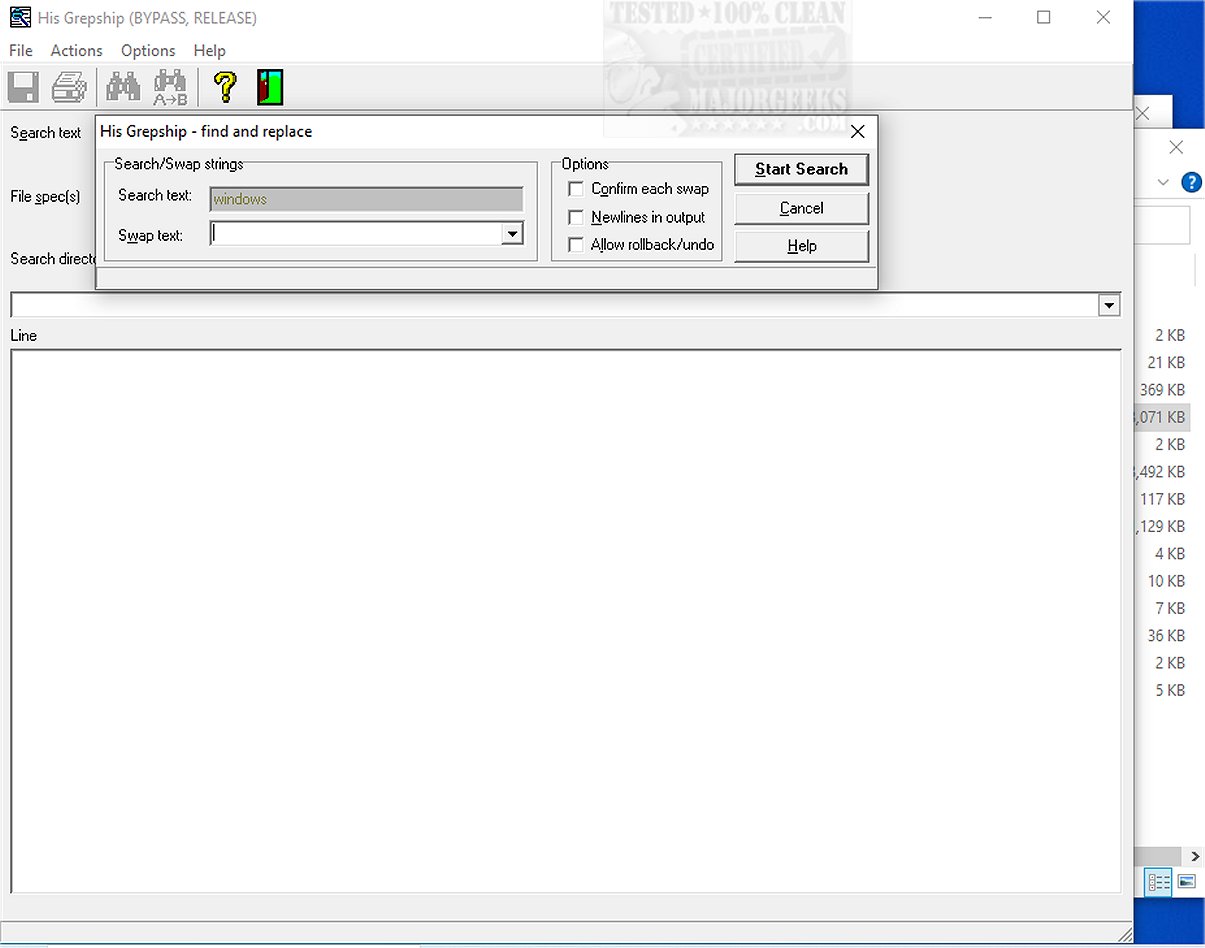 For those who desire more than mere basic search capabilities, HisGrepship offers sophisticated global find-and-replace features. This powerful functionality is tailored for both individual users and extensive networks, streamlining the editing process with unparalleled efficiency. You can review and confirm each replacement, ensuring complete control and confidence in every modification made to their files. Experience a new level of precision and ease with HisGrepship.