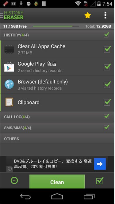 History Eraser - Privacy Clean is a history eraser for Android similar to CCleaner for the PC.