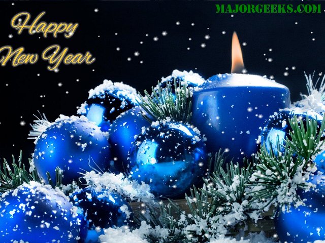 It says Happy New Year but the overall theme encompasses the whole season by featuring falling snow, evergreen covered blue ornaments with a beautiful flickering candle - more than enough holiday cheer to warm your computer workspace.