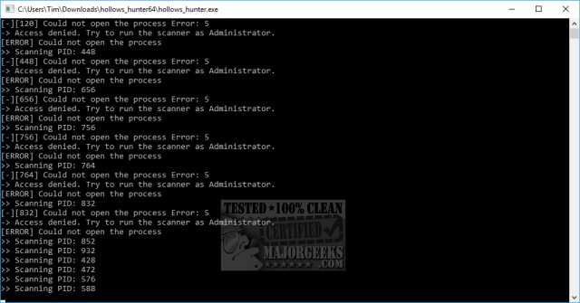 Hollows_Hunter uses PE-sieve, which is included. MajorGeeks mirrors contain both the 32-Bit and 64-Bit for those who need to take both with them.