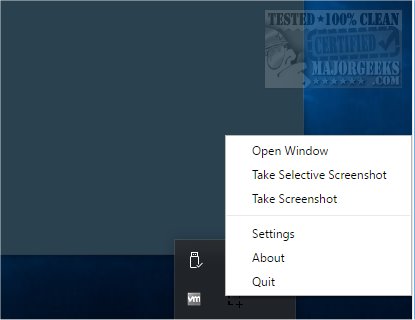 By right-clicking on the tray icon, you can open the main windows, take a screenshot or selective screenshot, access settings, and quit.