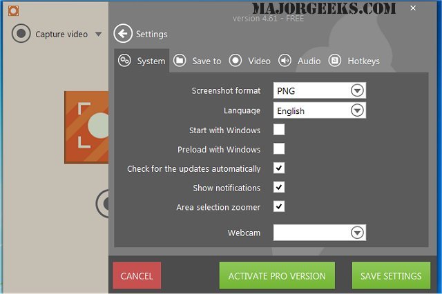 Recording limited to 5 minutes, a watermark and no output changes in the free version. The pro version ($29.95) further includes: