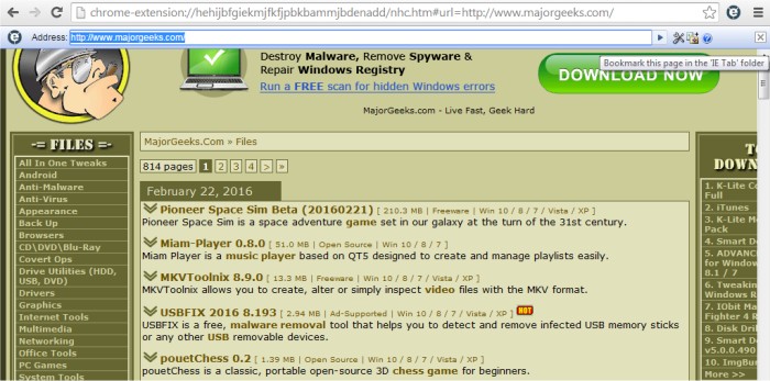 By doing this, IE Tab for Chrome enables the use of ActiveX controls to test your web pages with different versions of IE (IE6, IE7, IE8, or IE9). You also have the option to add any regularly used IE-only sites in order to have them automatically displayed within IE Tab whenever you visit them.