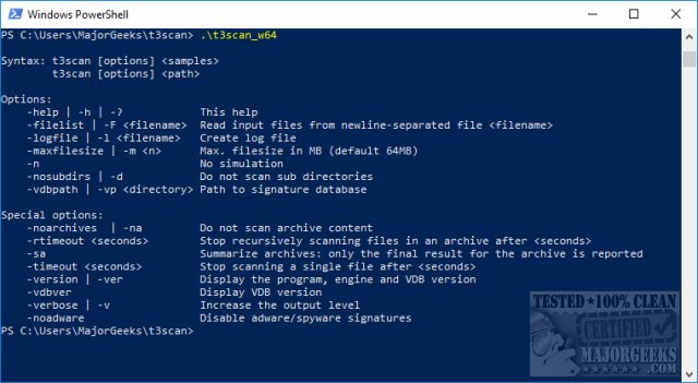 Ikarus T3 Commandline Scanner is a portable, command-line-based virus and malware scanner.