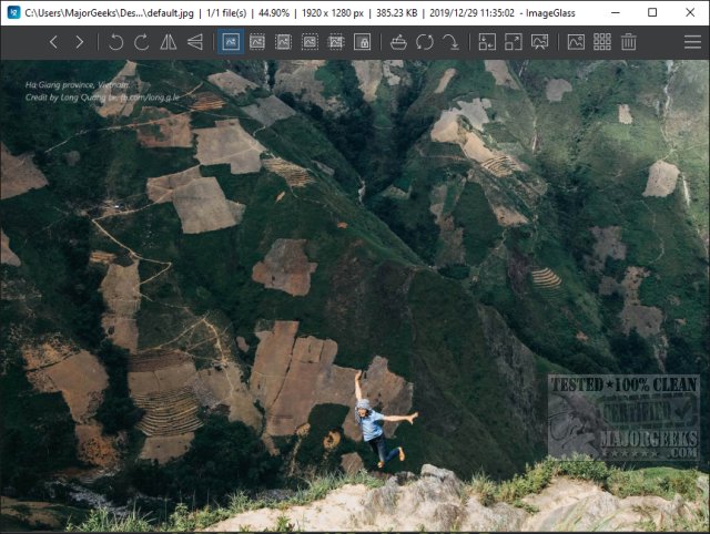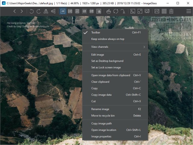 Like most programs, ImageGlass offers a row of icons across the top of the screen and a menu found in the top-right corner.
