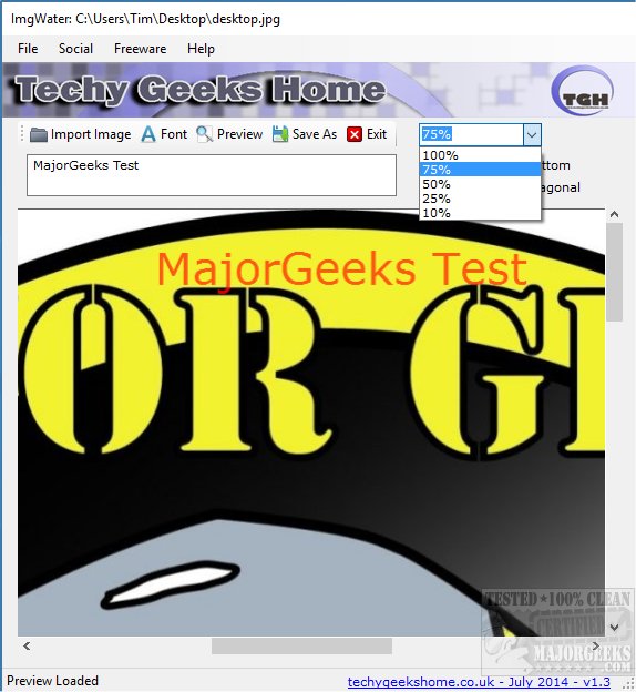 From here, just enter your watermark text and font. Opacity options can be changed from 10-100%, and finally, you can place your test at the top, bottom, middle or diagonal. A preview is available before you save your watermarked image. We would appreciate the ability to place the text where we want. Often preset watermark locations simply don't work.