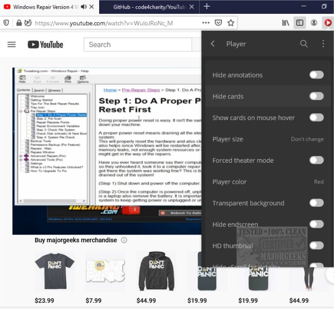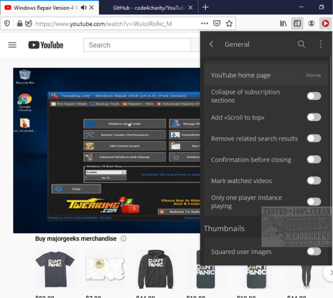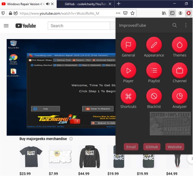 It is designed to make YouTube tidier and more powerful over the default offering. Improve YouTube! allows you to change the YouTube player size, adds themes, auto HD Colors, playback speed control, and more. One nice feature is being able to turn off ads with the ability to whitelist your favorite channel subscriptions - like for MajorGeeks...