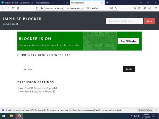 It is a very simple blocker with no password lock or configurations to speak of, so it requires some self-control on your part not to turn it off, but it is a nice option to have a specific countdown time before unblocking a website that has been added to the list.