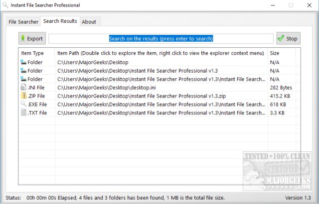 Instant File Searcher Professional takes searching for files and folders on any drive to a whole new level with plenty of options to narrow down your search. Just remember to take advantage of this and narrow down your search, so you get the best results. Instant File Searcher Professional's numerous ways of searching the drive must be used and is the only downside to the app.