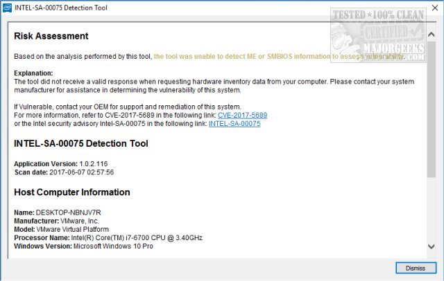 Screenshot for INTEL-SA-00075 Discovery Tool