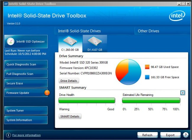 Screenshot for Intel Solid State Drive (SSD) Toolbox