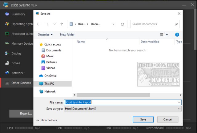 One-click to export a well-organized report of PC specs