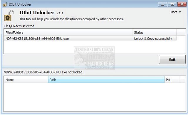 IObit Unlocker is able to terminate all related processes that lock the file or folder when switching to "Forced" mode.