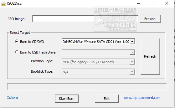 ISO2Disc is a simple ISO burner software to burn your ISO image file to CD/DVD disc or USB flash drive.