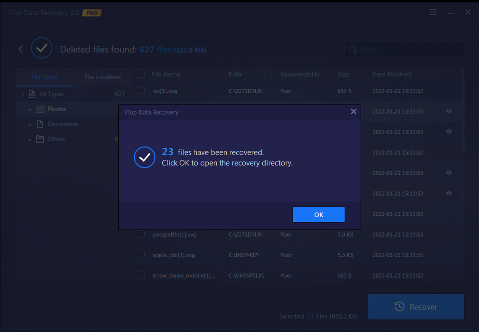 To sum up, iTop Data Recovery is your ideal choice for recovering emptied Recycle Bin, retrieving lost data from malware or viruses, and recovering data from system crashes, hard drive formatting or other errant operations that result in data loss.
