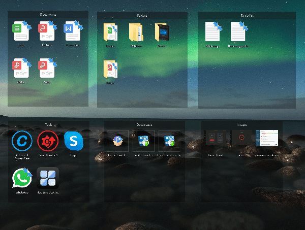 iTop Easy Desktop Auto organizes documents, videos, folders, apps, etc., to boxes on the desktop, helping maintain a cleaner look. You can even set up multiple pages.