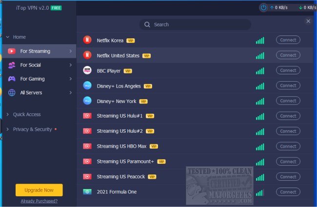 iTop VPN allows access to virtually any content allowing you to enjoy unlimited access to videos, music, social media, websites, games, and more with VPN servers across the globe.