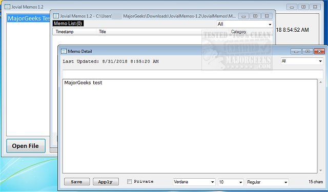 Jovial Memos is a portable note creation tool that provides a straightforward option to create password protected memos with no dependencies on other programs.