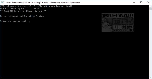 K7 Tdss Remover Tool runs in the command prompt, so it's best to run as admin. Everything is automated from here, simply follow the prompts.