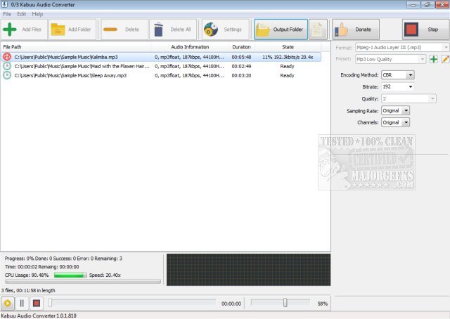 Kabuu Audio Converter provides multithreaded audio conversion and extraction supporting numerous formats.
